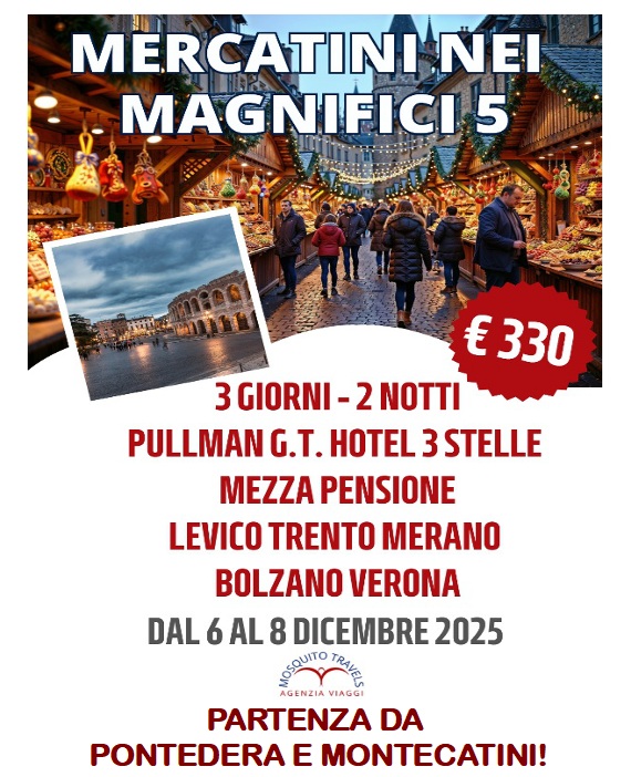LEVICO, TRENTO, MERANO, BOLZANO, VERONA DA PONTEDERA E MONTECATINI 6-8 DICEMBRE